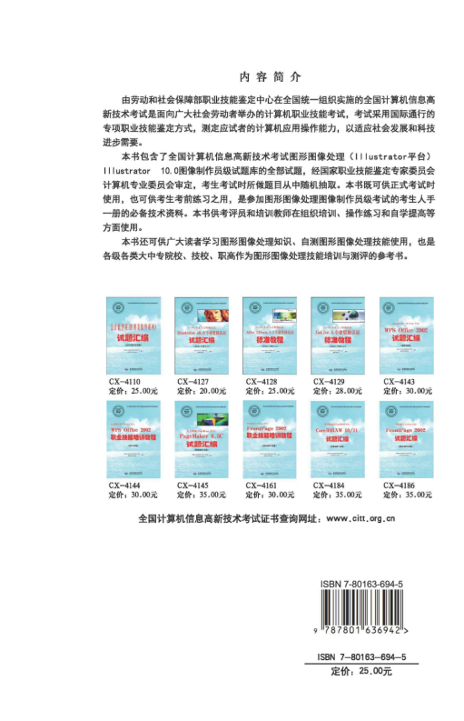 本书还可供广大读者学习图形图像处理知识、自测图形图像处理技能使用,也是各级各类大中专院校、技校、职高作为图形图像处理技能培训与测评的参考书。