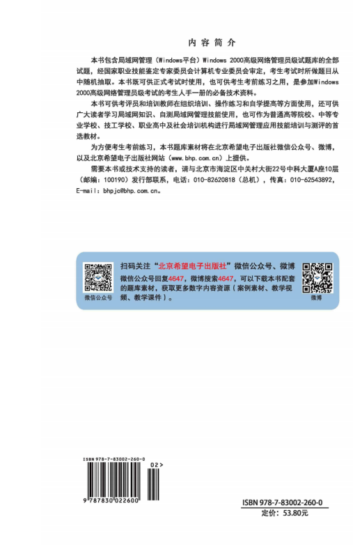 本书可供考评员和培训教师在组织培训、操作练习和自学提高等方面使用,还可供广大读者学习局域网知识、自测局域网管理技能使用,也可作为普通高等院校、中等专业学校、技工学校、职业高中及社会培训机构进行局域网管理应用技能培训与测评的首选教材。
