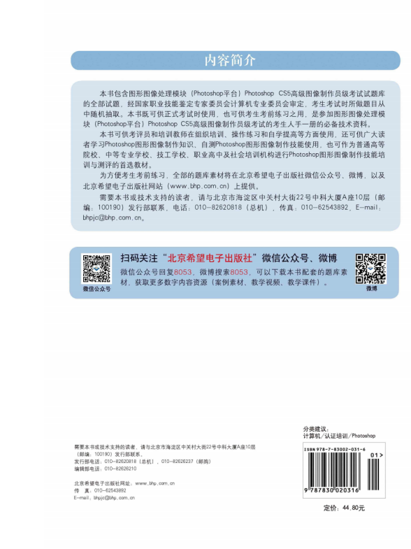 为方便考生练习,全部的题库素材将在北京希望电子出版社微信公众号、微博,以及北京希望电子出版社网站(www.bhp.com.cn)上提供。