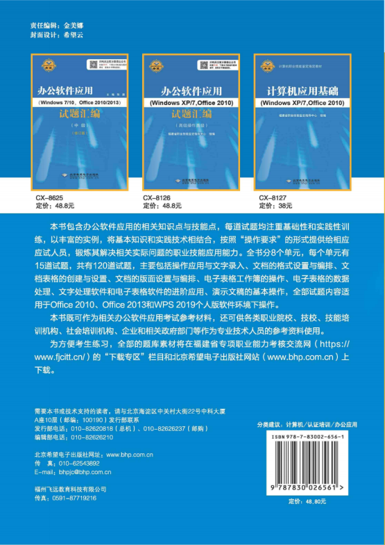 本书既可作为相关办公软件应用考试参考材料,还可供各类职业院校、技校、技能培训机构、社会培训机构、企业和相关政府部门等作为专业技术人员的参考资料使用。
